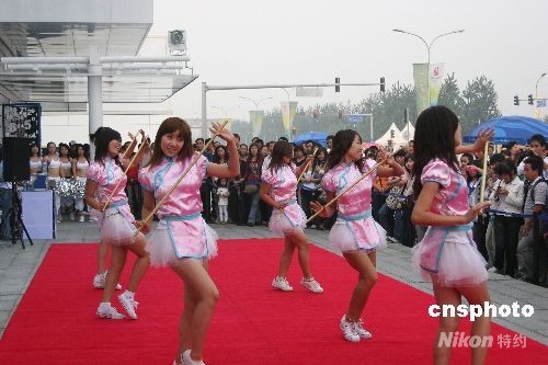 10月2日,奧運寶貝表演啦啦操!笆弧秉S金周期間,北京奧林匹克公園內(nèi),曾在“鳥巢”、水立方為2008奧運會比賽表演的三支奧運寶貝,為中外游客進行啦啦操表演,為節(jié)日的奧林匹克公園營造奧運氣氛。中新社發(fā) 陳曉根 攝