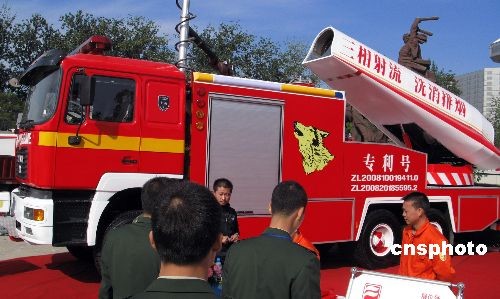 圖:國際消防設(shè)備技術(shù)交流展覽會(huì)上的消防車