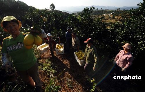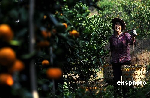 十月底,江西省安遠(yuǎn)縣的臍橙園里,果農(nóng)包裝豐收的臍橙。全國即將迎來柑橘類產(chǎn)品上市高峰。目前,中國各級農(nóng)業(yè)部門已有效控制果樹蛆蟲災(zāi)害,并為消費(fèi)者推薦優(yōu)質(zhì)柑橘果品。中新社發(fā) 廖攀 攝