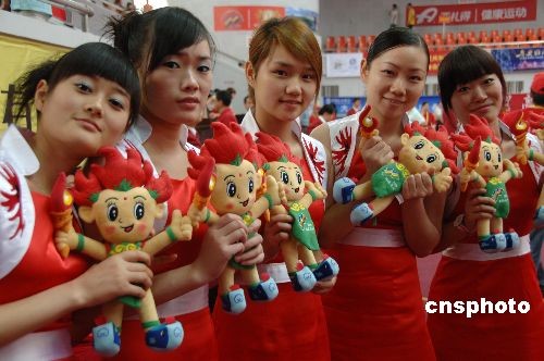 十月三十日,在福建泉州石獅市舉行的第六屆全國農(nóng)運(yùn)會舞龍舞獅比賽頒獎現(xiàn)場,等待進(jìn)行頒獎儀式的禮儀小姐身著富有中國情調(diào),色彩鮮麗的禮儀服飾令人眼前一亮。福建泉州石獅市有“服裝城”之稱,目前已躋身中國十大服裝批發(fā)市場之一。中新社發(fā) 鄭祚聲 攝