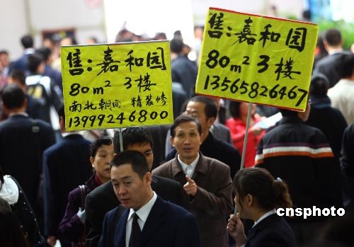 11月1日,新疆(秋季)房地產(chǎn)人居博覽會在烏魯木齊召開,眾多當(dāng)?shù)鼐窐潜P齊聚博覽會。由于近期房價回落,本屆房產(chǎn)博覽會吸引了大批準(zhǔn)備購房的市民前來一探究竟。圖為博覽會現(xiàn)場一些房產(chǎn)公司工作人員手舉“二手房廣告”在購房者中間穿梭。中新社發(fā) 劉新 攝