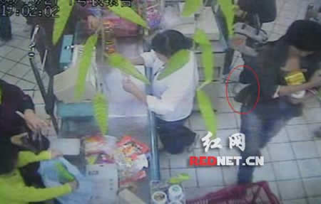“發(fā)現(xiàn)口袋里手機沒了的時候,腦子一片空白,翻了N遍口袋,不太敢相信手機真丟了!28日晚上,網(wǎng)友“菲林簍”在紅網(wǎng)論壇發(fā)帖爆料,稱27日晚上自己在長沙韶山路步步高林大店購物時,手機被盜。帖子附帶拍攝的超市監(jiān)控錄像的一組圖,用圈圈勾勒出了自己被3個年輕女小偷調(diào)包偷手機,并迅速在1分鐘內(nèi)逃離現(xiàn)場的過程。網(wǎng)友們紛紛對發(fā)帖人的遭遇表示同情,譴責(zé)小偷的同時提醒大家都注意防范。