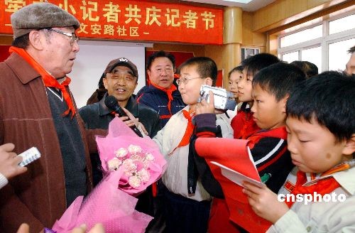 11月7日,沈陽(yáng)市新聞工作者協(xié)會(huì)的十余名沈陽(yáng)人民廣播電臺(tái)的離退休新聞工作者與文安路社區(qū)的小記者舉辦了“老記者牽手小記者共慶記者節(jié)”活動(dòng),老新聞工作者勉勵(lì)小記者用鏡頭和紙筆,去捕捉家鄉(xiāng)的新人新事新面貌,共敘祖國(guó)的繁榮富強(qiáng),以此來(lái)迎接11月8日中國(guó)第九個(gè)記者節(jié)。中新社發(fā) 羅瀾 攝