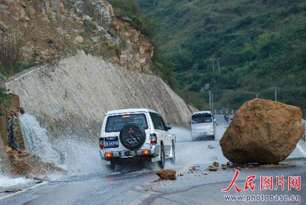 11月7日,貴州省黃平縣重安江鎮(zhèn)合家村凱(里)至施(秉)旅游公路上,一巨石山砸向公路,把正在路過的當?shù)匾晃?3歲的男性村民砸死。事故原因是由于持續(xù)降雨,引發(fā)地質災害,山上巨石滾落造成的。(匿名)