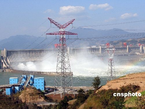 2008年11月8日,泄洪中的三峽工程。連日來,長江上游持續(xù)降雨導(dǎo)致長江發(fā)生罕見的冬汛,三峽工程大壩首次在冬季開閘泄洪并已持續(xù)數(shù)日。中新社發(fā) 劉君鳳 攝