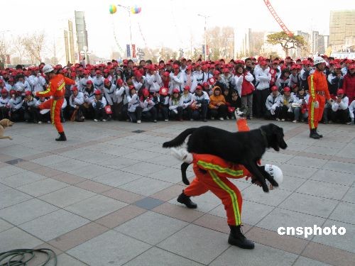 11月9日上午,以“關(guān)注消防,珍愛(ài)生命,共享平安”為主題的遼寧省沈陽(yáng)市“消防志愿者行動(dòng)”啟動(dòng)儀式在沈陽(yáng)師范大學(xué)文體館隆重舉行。省、市兩級(jí)公安消防、共青團(tuán)、教育、民政、文化、衛(wèi)生、婦聯(lián)、廣電、新聞出版、安全生產(chǎn)、工會(huì)、紅十字會(huì)等13個(gè)行業(yè)部門及4000多名消防志愿者參加啟動(dòng)儀式。啟動(dòng)儀式結(jié)束后,4000名消防志愿者現(xiàn)場(chǎng)進(jìn)行了滅火和疏散逃生演練,并展開(kāi)了志愿者消防宣傳互動(dòng)、消防知識(shí)問(wèn)答、滅火演練、搜救犬表演等異彩紛呈的宣傳活動(dòng)。 中新社發(fā) 趙敬東 攝