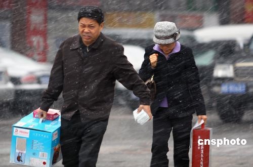 11月9日中午,新疆烏魯木齊市出現(xiàn)雨夾雪天氣,后轉(zhuǎn)為漫天大雪,令出行的市民“瞬間”感受到冬季的到來(lái)。進(jìn)入11月,該市白天最高溫度始終在10攝氏度左右徘徊,市民沉浸在深秋溫暖的天氣中。據(jù)新疆氣象臺(tái)介紹,受冷空氣影響,新疆北疆一帶、天山山區(qū)、哈密地區(qū)以及南疆部分地區(qū)均有降雪天氣,其中伊犁河谷、北疆沿天山一帶、天山山區(qū)等地的部分地區(qū)可達(dá)中量,氣溫將有明顯下降。中新社發(fā) 劉新 攝