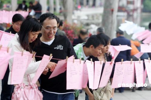 11月10日,還有1天就是光棍節(jié)了,福州西湖公園湖濱晨曦廣場舉辦的免費征婚活動吸引眾多單身男女和單身男女的父母匯聚在此尋覓或幫助尋覓意中人。中新社發(fā) 楊婀娜