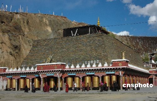 四川康定塔公鄉(xiāng)各日瑪林扎西寺的左側有一座“神山”,當地人稱為“經幡山”,中國農歷每月十五,當地民眾自發(fā)前往扎西寺朝拜神山進行祈禱。中新社發(fā) 肖龍聯 攝