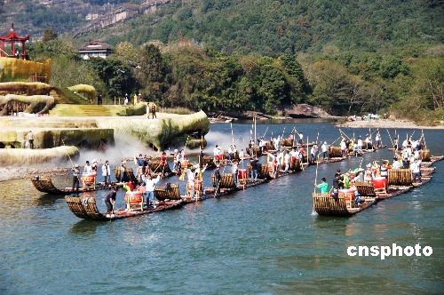 2008年11月14日,福建南平武夷山,張藝謀奧運會后復出開工第一個全新導演的“印象系列”——《印象·武夷山》在武夷山國家風景區(qū)內進行舞臺合練,將于16日在武夷山旅游節(jié)上演出。據了解,在此次的“印象”系列中,張藝謀會借鑒北京奧運會的一些創(chuàng)意手法,給觀眾帶來新的視覺體驗和驚艷感受。中新社發(fā) 張 斌 攝