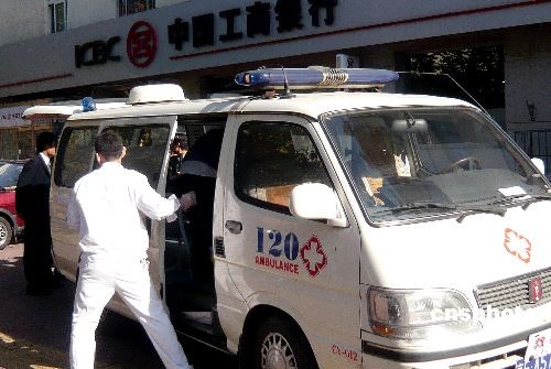 11月15日中午,北京一家工商銀行一位正在辦理個(gè)人業(yè)務(wù)的老人突然昏迷休克倒地,銀行工作人員立即呼叫120救護(hù)車前來(lái)進(jìn)行搶救。中新社發(fā) 錢興強(qiáng) 攝