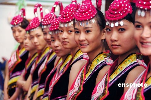 十一月十七日,一家座落于畬族地區(qū)、業(yè)界知名度頗高的茶企業(yè),請(qǐng)來(lái)一群美貌畬族姑娘在福建武夷山“第二屆海峽兩岸茶業(yè)博覽會(huì)”展覽館里出任企業(yè)產(chǎn)品形象大使,亦為茶博會(huì)增添了一道亮麗的風(fēng)景線。中新社發(fā) 鄭祚聲 攝