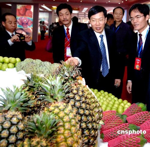 11月19日,第十屆海峽兩岸(福建漳州)花卉博覽會、二00八年臺灣農(nóng)產(chǎn)品博覽會進(jìn)入第二天。在臺灣農(nóng)產(chǎn)品博覽會展區(qū)通過兩岸“三通”路徑登陸福建漳州的十多種臺灣原產(chǎn)地水果,吸引了眾多來賓和民眾的目光。 中新社發(fā) 劉可耕 攝