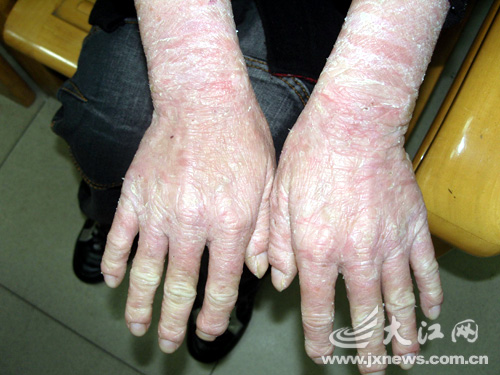 從生下來開始,全身皮膚就紅腫脫皮,現(xiàn)在已經23歲的余干縣余小姐的皮膚就像老人的皮膚一樣粗糙。
