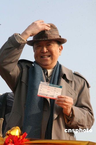 七十六歲的金先生告訴記者,他很幸運地拿到了杭州到臺灣首發(fā)直航班的一號票!白鳛榈谝惶柍藛T,我此刻非常激動!迸R登機前,金先生還不忘揮舞著這張?zhí)厥獾臋C票,向前來送行的人致意。中新社發(fā) 汪恩民 攝