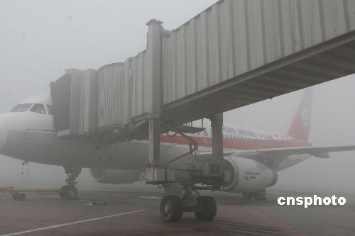 成都雙流國(guó)際機(jī)場(chǎng)12月16日再度遭受濃霧天氣襲擊,機(jī)場(chǎng)被迫關(guān)閉3個(gè)多小時(shí),直接造成109個(gè)進(jìn)出港航班延誤,其中出港74個(gè),進(jìn)港35個(gè),并使18個(gè)出港航班被迫取消,導(dǎo)致近1萬(wàn)名出港旅客受阻于機(jī)場(chǎng),不能按時(shí)飛往目的地。雙流機(jī)場(chǎng)及時(shí)向全場(chǎng)發(fā)布了二級(jí)預(yù)警信號(hào)。中新社發(fā) 呂俊明 攝