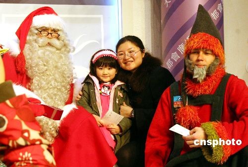 12月20日,來自芬蘭圣誕老人村的“正牌”圣誕老人與重慶小朋友合影,迎接即將來到圣誕節(jié)。中新社發(fā) 孟幻 攝