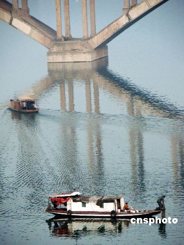 12月21日拍攝的重慶市云陽(yáng)縣雙江大橋“長(zhǎng)虹臥波”景象。最近10多天來(lái),三峽壩前水位保持在169.5米左右,距離最高水位尚差5米多。但該大橋的主墩露出水面已不足3米。在三峽工程經(jīng)歷135米、156米、175米三次蓄水之后,這座昔日曾經(jīng)“高高在上”的移民復(fù)建大橋顯示出橫臥小江的“限航之虞”。 中新社發(fā) 饒國(guó)君 攝