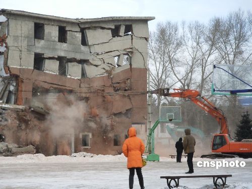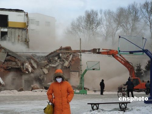 12月23日,齊齊哈爾一處棚戶區(qū)舊房被拆除。據(jù)2008年7月統(tǒng)計,齊齊哈爾市有近700萬平方米的棚戶區(qū)需要改造,齊齊哈爾市計劃用四年時間完成681.2萬平方米棚戶區(qū)改造任務(wù),將涉及11.3萬戶、33.7萬居民。中新社發(fā) 王云龍 攝