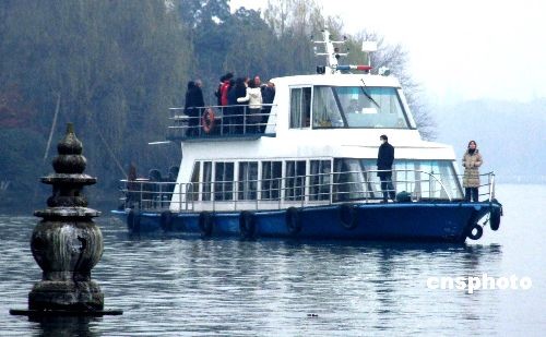 12月24日上午,日本青少年友好使者代表團一行38人搭船游覽杭州西湖,在“三潭映月”合影。新田理惠小姐表示:“早就聽說西湖很美,果然很讓我驚喜。雖然不是晴天,但是現(xiàn)在的西湖讓人覺得特別寧靜內(nèi)斂。”中新社發(fā) 周翌 攝