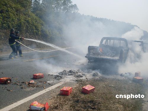 1月9日12點(diǎn)30分左右,廣西欽州市境內(nèi)一輛卡車突然起火,隨后引燃附近近千畝甘蔗林。欽州消防部門迅速趕到現(xiàn)場滅火,2個(gè)小時(shí)后大火被撲滅,事故無人員傷亡。中新社發(fā) 劉富強(qiáng) 攝