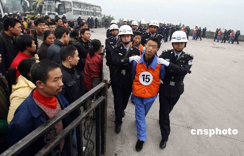 1月16日,重慶市公安局將30名扒手分別押至該市渝中區(qū)朝天門、菜園壩長途汽車站、渝北區(qū)龍頭寺汽車站等主城區(qū)4個人口密集地區(qū),請市民辨認(rèn)和舉報。該市公安局方面稱,這些扒手幾乎都是慣扒,且全部是最近在他們作案時抓到的。之所以押到車站鬧市,是希望曾經(jīng)失竊的市民現(xiàn)場辨認(rèn)和舉報,同時也是警方對扒手作案現(xiàn)場的恢復(fù)、重建等系列案偵工作手段。中新社發(fā) 吳子敬 攝
