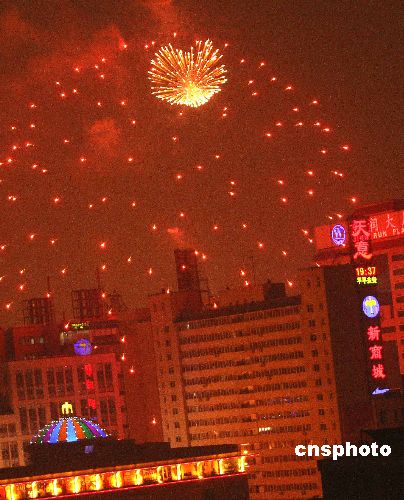 1月30日為牛年正月初五,北京市民迎來了過年的又一高潮,煙花爆竹再燃起,映亮北京城。中新社發(fā) 趙振清 攝
