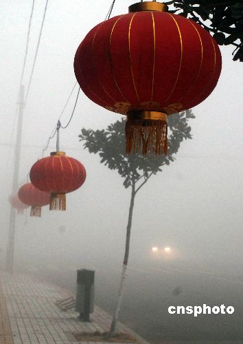 1月31日,山東省棗莊地區(qū)出現(xiàn)強(qiáng)濃霧天氣,能見(jiàn)度不足50米,當(dāng)?shù)貧庀蟛块T發(fā)布大霧黃色預(yù)警信號(hào),提醒市民安全出行。 中新社發(fā) 劉明祥 攝