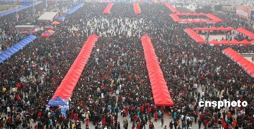 2月6日,“2009年河北省畢業(yè)生就業(yè)市場”在石家莊市東開發(fā)區(qū)火炬廣場舉行。這是河北省今年首場、也是全年規(guī)模最大的一次畢業(yè)生就業(yè)活動(dòng),招聘大會(huì)有1362家單位報(bào)名,提供近3萬個(gè)工作崗位,招聘單位和崗位數(shù)量均創(chuàng)該省歷史新高,預(yù)計(jì)將有10萬名求職者爭搶“飯碗”。
