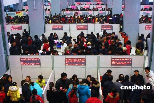 2月6日,江蘇省海安縣舉行“春天的陽光”農(nóng)民工就業(yè)專場招聘會(huì),125家用人單位3600多個(gè)崗位,吸引了18000多名農(nóng)民工前來應(yīng)聘。中新社發(fā) 仇穩(wěn)山 攝