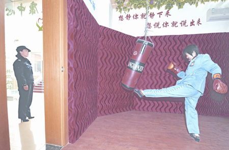 2月5日,四川省各大監(jiān)獄中惟一獨(dú)立為服刑人員設(shè)立健康中心的成都女子監(jiān)獄首次推出心理宣泄室。華西 攝