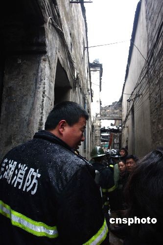 2月18日下午1時30分左右,安徽蕪湖市西內(nèi)街一居民房發(fā)生火災(zāi)。蕪湖消防部門接到報警后迅速趕往火災(zāi)現(xiàn)場撲救,公安民警緊急疏散附近居民。目前尚未接到人員傷亡報告,火災(zāi)原因在調(diào)查中。中新社發(fā) 水從澤 攝