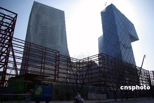 2月27日,工人們正在給央視新址火災(zāi)現(xiàn)場(chǎng)搭建護(hù)欄。據(jù)專(zhuān)家勘察,央視新址北配樓主體結(jié)構(gòu)未受?chē)?yán)重影響,專(zhuān)家建議采取剝除“外衣”局部修復(fù)的方式維修該樓,估計(jì)年內(nèi)能修復(fù)完成。 中新社發(fā) 九州 攝