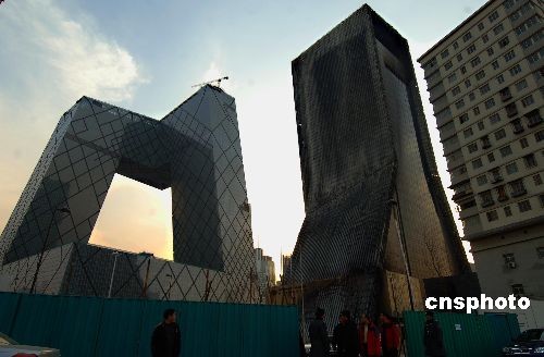 2月27日,北京中央電視臺新址遭受火災(zāi)的北配樓(中)修復(fù)工程拉開帷幕,年內(nèi)將完成拆卸被燒毀表面及修復(fù)工程。2月9日,央視新址附屬樓發(fā)生大火,受損十分嚴重,工程承保單位--中國人保已專門成立理賠工作組并啟動處置工作。中新社發(fā) 鄒憲 攝