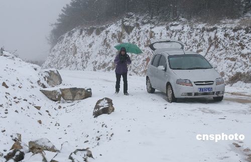 3月7日下午,浙江省天臺縣千米高山的蒼山頂下起大雪。據(jù)當?shù)貧庀蟛块T介紹,這個季節(jié)下雪在當?shù)夭⒉欢嘁姟V行律绨l(fā) 丁必裕 攝