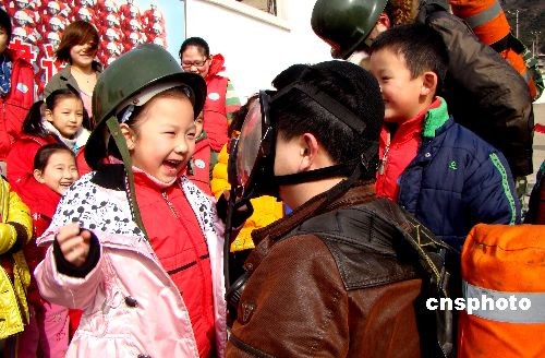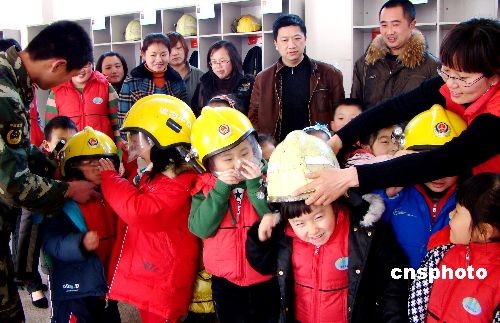 3月13日,江蘇連云港市公安連云消防大隊(duì)舉辦了“警營(yíng)對(duì)外開(kāi)放日”活動(dòng),邀請(qǐng)老師、家長(zhǎng)、小朋友前來(lái)參觀。小朋友們參觀了消防設(shè)施,聽(tīng)消防隊(duì)員講解消防知識(shí),體驗(yàn)著裝,試戴呼吸器,親身感受警察風(fēng)采。警民共同迎接即將到來(lái)的“3·14國(guó)際警察日”。中新社發(fā) lyg王春 攝