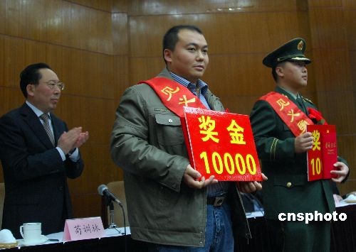 3月19日,青島開發(fā)區(qū)召開見義勇為表彰大會,隆重表彰“3.8”唐島灣跳海救人英雄樊升坤等35名見義勇為積極分子,并為他們頒發(fā)了見義勇為積極分子榮譽證書和1000元至50000元不等獎金。中新社發(fā) 衛(wèi)卿 攝