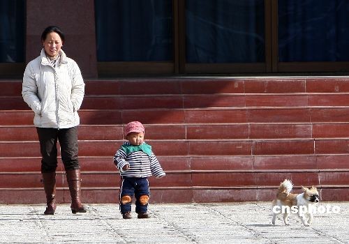 3月20日,一位媽媽帶著孩子在雪后的拉薩街頭沐浴陽光,當(dāng)日是春分,春分意味著春天真正來到了大家身邊。但由于特殊的地理位置,拉薩真正進(jìn)入春天,還要等20多天。中新社發(fā) 杜洋 攝