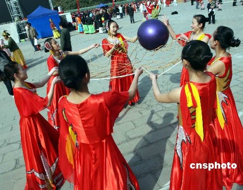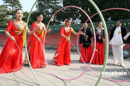 三月二十日,是中國二十四節(jié)氣中的春分。北京春分朝陽民俗文化藝術節(jié)閃亮登場,為中國這一第一批非物質文化遺產的傳承提供了展示的天地。北京春分朝陽民俗文化藝術節(jié)于二零零七年開始首創(chuàng),直至今年已經舉辦了三屆。圖為少女們在北京春分朝陽民俗文化藝術節(jié)上進行表演。中新社發(fā) 任海霞 攝