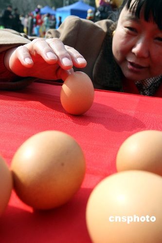 三月二十日,是中國二十四節(jié)氣中的春分。北京春分朝陽民俗文化藝術(shù)節(jié)閃亮登場(chǎng),民眾紛紛“豎”雞蛋迎春分!按悍值,蛋兒俏”,中國春分時(shí)節(jié)的“豎蛋游戲”,目前已成為世界性的游戲。中新社發(fā) 任海霞 攝