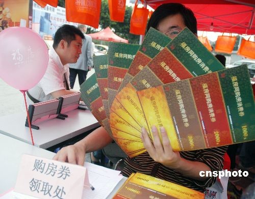 3月22日,由福州房地產(chǎn)協(xié)會聯(lián)合媒體和房地產(chǎn)商共同舉辦的發(fā)放購房消費券活動從3月20-23日開始向福州市民發(fā)放,消費券面額為1000至5000元不等,市民在指定的地點購房時出示消費券,可以獲得相等價格優(yōu)惠,消費券有效期為一個月。記者在現(xiàn)場看到,發(fā)放購房消費券并沒有得到市民的積極響應(yīng),與其它地方發(fā)放購房消費券市民排起長龍火爆放發(fā)相比,福州市民則反應(yīng)冷清。中新社發(fā) 張斌 攝