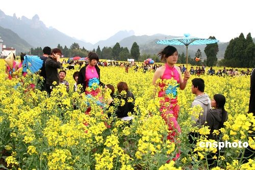 3月22日,浙江省仙居縣10萬(wàn)畝油菜花田陸續(xù)開放,成片的金黃色油菜花吸引了眾多中外游客踏春賞花。中新社發(fā) 金煒民 攝