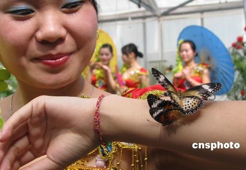 4月1日,位于北京植物園內(nèi)的熱帶蝴蝶生態(tài)園正式開園,數(shù)千只色彩斑斕的蝴蝶和數(shù)十種千奇百怪的蟲子將正式與游客見面。熱帶生態(tài)蝴蝶園是中國(guó)內(nèi)地首次從馬來西亞檳城蝴蝶園進(jìn)口的集昆蟲蝴蝶標(biāo)本、活體昆蟲展示和活蝴蝶放飛為一體的具有知識(shí)性、趣味性、科普性、教育性的昆蟲蝴蝶科普生態(tài)園,也是國(guó)內(nèi)第一家進(jìn)口的活體蝴蝶和昆蟲品種最全、規(guī)模最大、蝴蝶昆蟲標(biāo)本最多科普展。熱帶蝴蝶生態(tài)園共分為三個(gè)展區(qū):蝴蝶館、昆蟲館、科普標(biāo)本館。圖為蝴蝶生態(tài)園吸引游客。中新社發(fā) 錢興強(qiáng) 攝