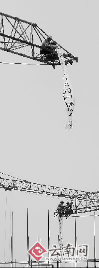 據(jù)介紹,早晨8點(diǎn)左右,他們爬上高達(dá)幾十米的塔吊。記者抬頭仰望感到一陣頭暈,這讓記者不禁為塔吊上的工人捏了把冷汗。