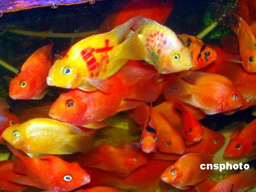 日前,杭州吳山廣場(chǎng)“紋身魚(yú)”火爆熱賣,魚(yú)身上分別紋上了“生”、“意”、“興”、“隆”、“恭”、“喜”、“發(fā)”、“財(cái)”的漢字,據(jù)商家介紹,剛引進(jìn)的時(shí)候每只只賣20多元,現(xiàn)在賣到100元一只,380元四只的價(jià)格,仍然供不應(yīng)求,杭州市民對(duì)這種魚(yú)似乎格外的喜歡,讓商家也很意外。中新社發(fā) 王磊 攝