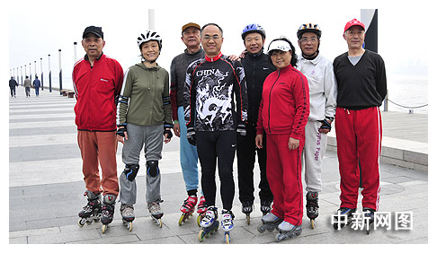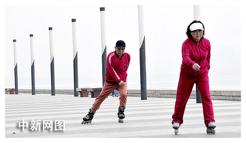 中新網(wǎng)蘇州4月16日電(周昕) 清晨的蘇州工業(yè)園區(qū)金雞湖畔,一群老人特別的顯眼,和一般老人打拳、舞扇、散步的鍛煉方式不同,他們雙手背在身后,腳下踩著“風(fēng)火輪”,八個人排成一列,向前滑行,一個滑步便輕松地把其他人遠(yuǎn)遠(yuǎn)地甩在了身后,顯得異常瀟灑并且充滿活力。
