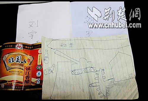 昨日(21),洪山區(qū)(武漢)南湖工商所接到舉報(bào),在該區(qū)紅旗村一臨時(shí)搭建的民房中查獲一個(gè)制假作坊,收繳大量假名牌醋等。據(jù)查,作坊老板劉某是安陸人,今年2月起與妻子在此租房,以每袋2毛錢(qián)購(gòu)進(jìn)散裝醋精,兌水炮制“名醋”,低價(jià)賣(mài)給周邊副食店和小超市。執(zhí)法人員現(xiàn)場(chǎng)發(fā)現(xiàn)一幅筆法幼稚的漫畫(huà):一輛坦克的大炮直指2瓶“名醋”。劉某的妻子稱(chēng),這是她11歲的兒子為諷刺他們制假而作。(張樂(lè)克 徐永峰 章敏)