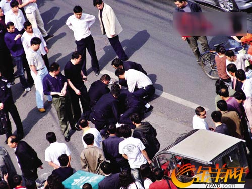 昨天下午4時左右,在北京右安門醫(yī)院的急診監(jiān)護(hù)室里,喬文輝(音)女士下巴、左手中指和手腕均纏著紗布,向警方訴說著兩個小時前自己的驚險經(jīng)歷。