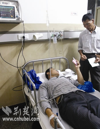 昨日,記者在仙桃市人民醫(yī)院見到了3名癥狀較重的患者;颊咄跸让舴Q,昨日凌晨1時許,他突然開始上吐下瀉,四肢無力。在家硬撐了一夜后,昨日清早,他被家人送到醫(yī)院。他只聽醫(yī)生說是食物中毒,跟前日中午參加的一場婚宴有關。