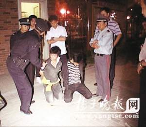 記者趕到現(xiàn)場時,兩名年輕男子雙手被反綁,跪在小區(qū)門口不敢動彈,他們的臉上有多處傷痕。兩名男子四周站滿了小區(qū)業(yè)主,面對大家的指責,他們低下了頭,不斷求饒,讓大家放他們一馬。據(jù)一名小區(qū)保安介紹,當晚,他和另外一名保安在門衛(wèi)室值勤。到了9點半時,他發(fā)現(xiàn)兩名陌生男子推著一輛自行車從小區(qū)內(nèi)走來,兩人還邊走邊四處張望。他覺得對方可疑,當即喊上一名同事上去盤問。經(jīng)盤問,兩名男子并不是小區(qū)業(yè)主,也無法說出來小區(qū)的目的,對于自行車的來歷,更是支支吾吾。細心的保安發(fā)現(xiàn)自行車鎖有明顯被撬痕跡,當即斷定兩人是偷車賊,于是,當場將這兩人按倒,同時呼叫其他保安增援。小區(qū)業(yè)主孫先生說,兩名偷車男子被揪住后不一會兒,就哭著求饒了,并主動承認他們是來小區(qū)偷自行車的,也表示將自行車歸還,希望保安放他們一馬。兩保安見那兩男子服軟了,才停手,但他們沒有立即報警,而是找來繩子將兩名男子雙手反綁在背后,然后脫去他們的鞋子,逼迫他們跪在門衛(wèi)室門口。